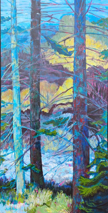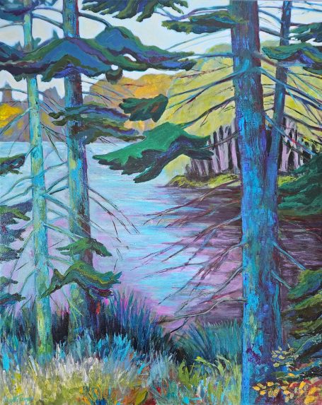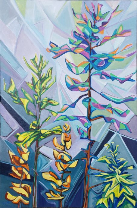Her paintings capture the vibrancy and energy of nature, through colour and form.